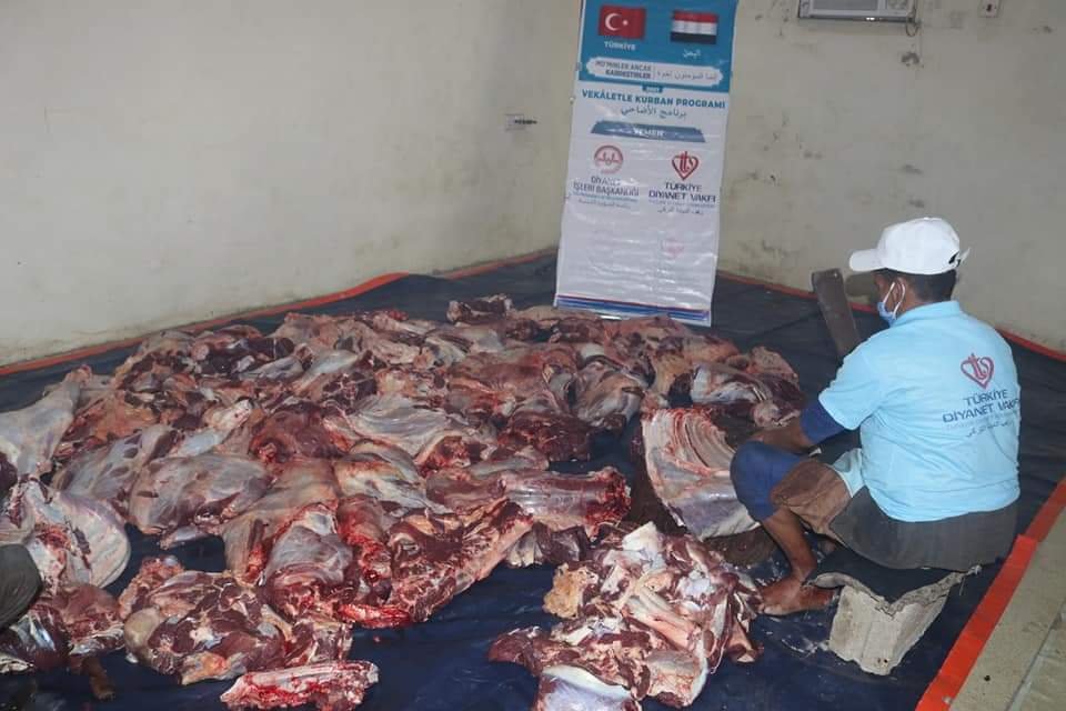 بمناسبة عيد الأضحى المبارك وبتمويل من وقف الديانة التركي وتنفيذ مؤسسة البادية للتنمية والأعمال الإنسانية تم صباح اليوم بمدينة مأرب تدشين أعمال توزيع أضاحي عيد الأضحى المبارك للعام 2021م 1442ه على الأسر الفقيرة والنازحة في مناطق المدينة